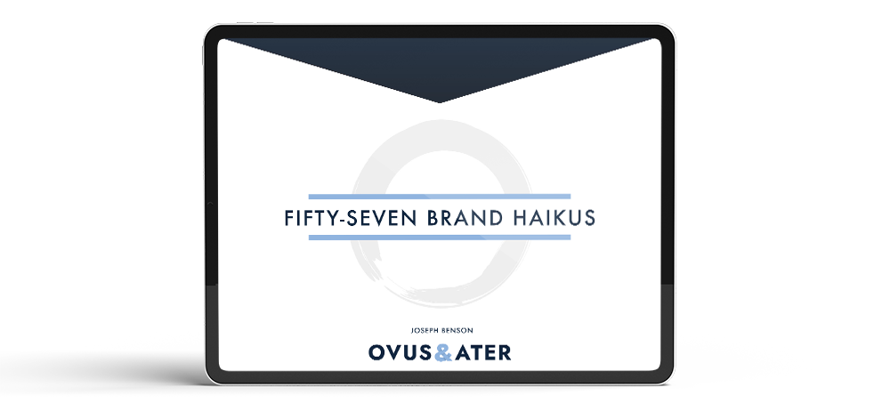 Ovus & Ater is proud to introduce its book Fifty-Seven Brand Haikus.